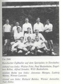 In den darauf folgenden Jahren wurde sich verstärkt um einen Sportplatz gekümmert und schließlich konnte man ab 1933 die ersten Spiele auf dem Sportplatz in der Oststrasse bestreiten. Nach den wiederum schweren Jahren des zweiten Weltkrieges wurde der Verein im Jahre 1951 durch das Amtsgericht eingetragen. Am 25.01.1958 wurde auf der Jahreshauptversammlung bei nur einer Gegenstimme beschlossen, den Vereinsnamen in "Sportvereinigung 1912 e.V. Ransbach" zu ändern. Bis heute hat sich in dieser Hinsicht nichts geändert. Die folgenden Jahre verliefen gewöhnlich, ohne spektakuläre Errungenschaften, sodass in dieser Kurzchronik ein kleiner Sprung erfolgt.