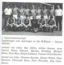 Viele kamen, viele gingen (Jürgen Kelterbach, Bernd Langer, Christof Dillmann, Günter Weber, Dietmar Ruhl), bis 1984 mit Ulrich Kessler wieder der "richtige" Trainer verpflichtet wurde. Nach dem zwischenzeitlichen Abstieg in die C-Klasse während der "Karussell-Jahre" verhalf Kessler der Mannschaft zu neuer Geschlossenheit und Kameradschaft. Dies gipfelte im Aufstieg und der gewonnenen Kreismeisterschaft am 16.05.1986 durch ein 2:1 in Stromberg.